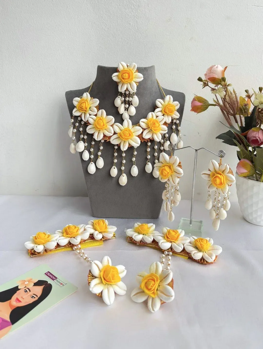 Discover our trending product of haldi jewellery, sea shell jewellery and flower jewellery.