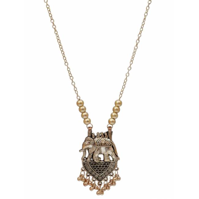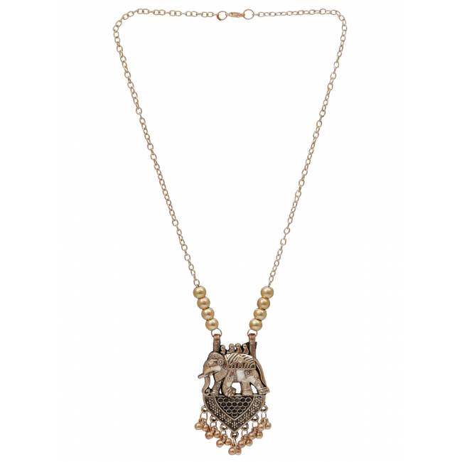 Oxidized German Goldeb Royal elephant Design Long Necklace CFN0902